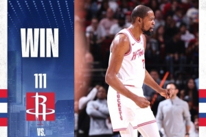 火箭官方發布本場比賽贏球海報,封面人物為杜蘭特。