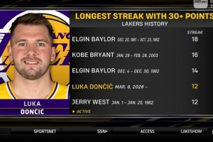 能延續(xù)嗎?東契奇已連續(xù)12場(chǎng)30+ 今天可能超越韋斯特獨(dú)居隊(duì)史第四