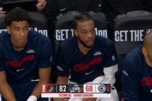 快船迎戰(zhàn)開(kāi)拓者,第三節(jié)加蘭吃技犯,當(dāng)時(shí)他被阿夫迪亞造犯規(guī),被換下還在抱怨,吃到技術(shù)犯規(guī)。