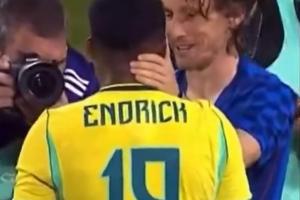 好久不見!19歲恩德里克開心抱起40歲莫德里奇,兩人賽后寒暄