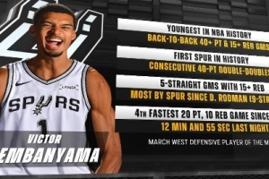 獨角獸時代!文班背靠背40分15板歷史最年輕 連續40+兩雙隊史首人