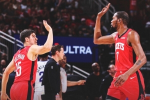 本場比賽,火箭球星杜蘭特表現出色,進攻高效并且很全能,僅打30分鐘,投籃12中8,三分球4中2,罰球8中7,拿到25分5籃板6助攻2蓋帽的數據,正負值+24。