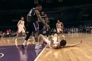 丹尼斯推倒扣籃后的楊瀚森吃T