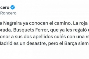 《阿斯報》主編、皇馬球迷龍賽羅社媒寫道:“內格雷拉的繼承者們已經摸清了門道。這是本賽季至今最明顯的紅牌。布斯克茨·費雷爾——這位已經在巴列卡斯送給過他們一個點球的裁判——用一次可恥的改判,完美地印證了他的兩個帶有巴薩色彩的姓氏,皇馬表現確實糟糕,但巴薩永遠是12人作戰。”