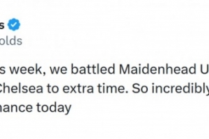 雷克瑟姆老板“死侍”瑞安·雷諾茲社媒發(fā)文:“三年前的這一周,我們與麥登赫德(目前第6級別球隊)戰(zhàn)平,而今天我們將切爾西逼進(jìn)加時賽,我為雷克瑟姆今天的表現(xiàn)感到無比驕傲。”