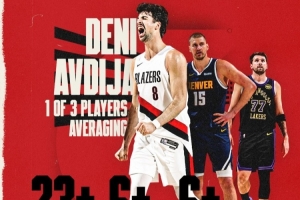 本賽季,阿夫迪亞場均23.9分7籃板6.7助攻;約基奇場均27.9分12.9籃板10.9助攻;東契奇場均33.5分7.7籃板8.3助攻。