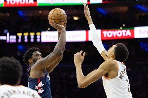 本場比賽,76人球星恩比德表現不錯,進攻端殺傷力十足,打了39分鐘,投籃19中8,三分球6中2,罰球19中16,空砍34分12籃板1助攻4蓋帽。