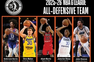 體育資訊4月8日訊 今天,G聯盟官方公布了2025-26賽季的最佳防守陣容,分別是: