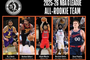 體育資訊4月8日訊 今天,NBA發展聯盟官方公布了25-26賽季最佳新秀陣容。