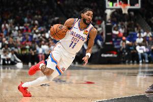體育資訊4月8日訊 NBA常規賽,雷霆半場65-47領先湖人。