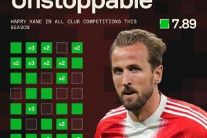 據(jù)Sofascore統(tǒng)計(jì),凱恩本賽季為拜仁出戰(zhàn)41場(chǎng)比賽,打進(jìn)49球,僅10場(chǎng)比賽未破門(mén),從未連續(xù)3場(chǎng)比賽無(wú)進(jìn)球。