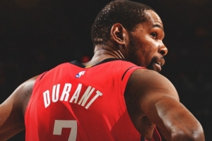 賽后火箭官方曬出本場贏球海報,封面人物是杜蘭特。
