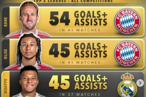 體育資訊4月8日訊 數(shù)據(jù)網(wǎng)站Score90盤點了本賽季五大聯(lián)賽球員在各項賽事總參與進(jìn)球榜(進(jìn)球+助攻),前五中拜仁占據(jù)三席,具體如下: