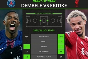 體育資訊4月9日訊 巴黎將在本輪歐冠對陣利物浦,兩隊前鋒的表現值得關注,whoscored也列出了兩人的本賽季歐冠關鍵數據對比:
