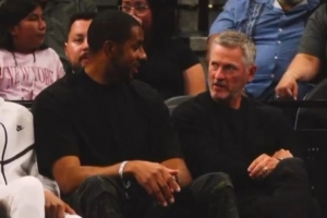 阿德和開拓者新老板鄧頓一起觀戰與馬刺的比賽 兩人聊得挺投機