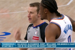 SGA+多特+杰倫威+切特+哈滕組合本賽季首發(fā)101分鐘 正負(fù)值達(dá)+60