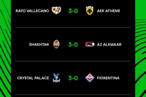 體育資訊4月10日訊 歐協聯1/4決賽首回合比賽戰罷,水晶宮3-0擊敗佛羅倫薩,美因茨2-0戰勝斯特拉斯堡。
