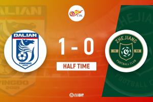半場戰罷,大連英博暫1-0浙江。
