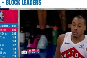 本賽季搶斷+蓋帽數(shù)榜:文班260斷檔第一 巴恩斯第二 奧薩爾第三