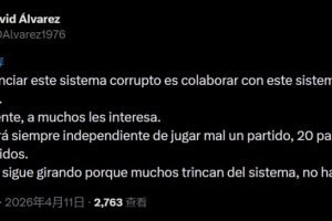 體育資訊4月11日訊 皇馬TV主持人David álvarez更新社媒,表達(dá)了對皇馬1-1赫羅納比賽中判罰的不滿。