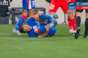 比賽第25分鐘,吳曦被盧永濤放倒后痛苦倒地打滾,裁判向盧永濤出示黃牌。
