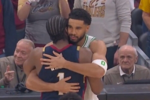比賽期間哈登和剛剛復出的塔圖姆進行了簡短交流,當被問到兩人說了什么時,哈登說:“我只是告訴他,當你看到一個如此年輕、如此有天賦,并且已經取得了這么大成功、贏得了總冠軍的球員,然后突然遇到了挫折,他還能保持著‘什么都無法阻擋我’的心態回歸,復出第一場就打得很好,今晚也打得很好,這本身就是一種鼓舞?!?/p>