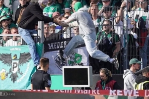 在昨晚進行的第25輪德乙聯賽,普魯士明斯特主場1-2負于柏林赫塔。上半場補時階段,主隊在禁區內疑似犯規,主裁判來到場邊觀看VAR視頻回放。此時一名普魯士明斯特球迷蒙面翻越護欄闖進球場,并拔掉了VAR顯示器的電源插頭,以此干擾主裁判的執法。