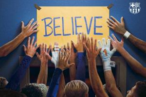 賽前,巴薩官方社媒,曬出全員用手觸碰“相信”標語的海報,借用了美劇《足球教練》中的梗。