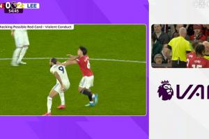 裁判通告:“經(jīng)回看確認(rèn),曼聯(lián)6號(hào)球員存在拉扯對(duì)方頭發(fā)的暴力行為,最終判罰為紅牌。”