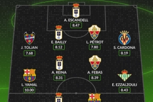 Whoscored評本輪西甲最佳陣:亞馬爾滿分領銜,費蘭、拜利在列