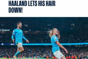最終,曼城4-1大勝,德布勞內(nèi)2射1傳,哈蘭德最后時(shí)刻披頭散發(fā)打入一球,曼城也以“哈蘭德放下頭發(fā)”為這一瞬間的標(biāo)題。