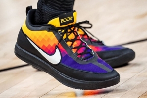 球隊(duì)曬出了賽前布克熱身的畫(huà)面,還有他腳上新配色球鞋的特寫(xiě)。這雙球鞋是Book 2 “The Valley”配色。以鳳凰城都市區(qū)的昵稱(chēng)“The Valley(山谷)”及地貌為靈感。