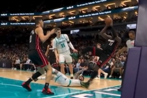 上半場,黃蜂主將拉梅洛·鮑爾用手扒了熱火球星阿德巴約腳后跟致其倒地受傷,后者返回更衣室,本場回歸成疑!