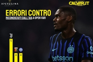 體育資訊4月15日訊 外媒盤點了本賽季意甲球隊出現VAR不利判罰的次數榜,其中尤文5次最多,國米4次第二。具體如下: