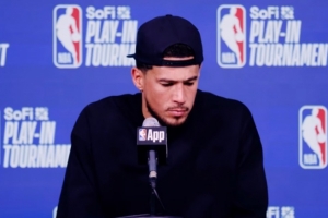體育資訊4月15日訊 NBA附加賽,太陽在主場以110-114不敵開拓者。賽后布克接受了采訪,以下為采訪全文。
