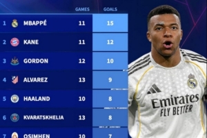 本賽季歐冠射手榜:姆巴佩15球居首,凱恩12球次席,小蜘蛛9球