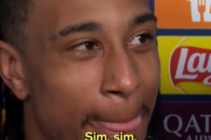 播吧4月16日訊 歐冠1/4決賽次回合比賽,拜仁主場4-3擊敗皇馬,兩回合總比分6-4晉級,奧利塞攻入關(guān)鍵進(jìn)球,當(dāng)選此役最佳球員,賽后他接受采訪時(shí)發(fā)生了有趣的一幕。