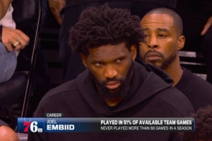太脆了!恩比德生涯出勤率僅51% 單賽季出戰(zhàn)場(chǎng)次從未超過(guò)68場(chǎng)