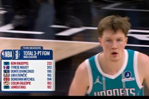 此前,克尼佩爾已經打破了NBA歷史新秀單賽季三分命中數紀錄(此前基根·穆雷206記三分),還有望成為歷史首位拿下聯盟賽季三分王的新秀球員。