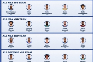 一陣:亞歷山大、約基奇、文班亞馬、東契奇、坎寧安