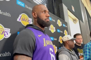 體育資訊4月17日訊 今日,湖人球星詹姆斯在訓練后接受了采訪。