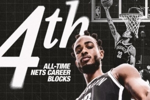 截至發稿,他送出1次蓋帽,籃網生涯蓋帽數達到600,順勢超越邁克·戈明斯基升至隊史第四位。排在第三的是巴克·威廉姆斯的696次。