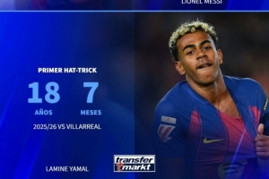 體育資訊3月3日訊 德國(guó)轉(zhuǎn)會(huì)市場(chǎng)盤點(diǎn)了部分球星首次戴帽的年齡,姆巴佩17歲,亞馬爾18歲,梅西19歲。