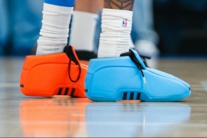 今天缺席比賽的杰倫·威廉姆斯在賽前也進(jìn)行了常規(guī)訓(xùn)練。而他上腳了一雙Adidas Crazy 2 “OKC” PE。球鞋采用了雷霆球衣配色的藍(lán)橙鴛鴦配色。