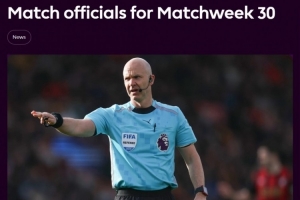 體育資訊3月11日訊 英超官方公布聯賽第30輪各場執法裁判,安東尼·泰勒執法曼聯vs阿斯頓維拉,克里斯·卡瓦納執法利物浦vs熱刺。