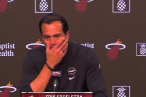 賽后,熱火主教練斯波點評阿德巴約表現時說道:“這是一個超現實的夜晚,我們在這座球館里見證過太多奇跡,今晚這就這么發生了,我們很幸運,能夠見證這一刻。他第一節的表現就像一頭怪獸,半場40+,半場休息的時候我們還是在說就正常打我們的比賽,但球就是在不斷的找到他。一旦他得到50分,我們就認為他能得60分,一旦他得到60分,我們就說得70分吧,我從那時候起就沒想過,甚至不敢換下他,我想讓他享受生涯之夜,讓他享受球迷的歡呼,我不知道他的得分什么時候會停止,但他一直在得分,最終我在他得分超越科比后才把他換下來?!?/p>