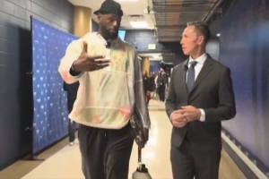 體育資訊3月6日訊 今日NBA焦點(diǎn)戰(zhàn),湖人客場挑戰(zhàn)掘金,詹姆斯賽前到場后見到了自己的播客搭檔納什。