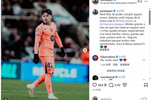 埃斯帕特社媒曬出比賽照片,并寫道:“非常高興能夠實現這個夢想——在一生摯愛的巴薩上演首秀,并且是在歐冠比賽之中。