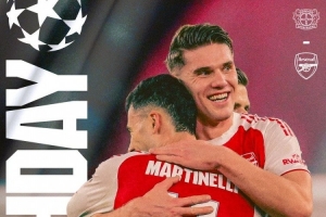 阿森納發布歐冠客戰勒沃庫森海報:約克雷斯、馬丁內利出鏡