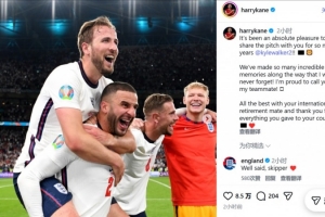 體育資訊3月11日訊 在沃克退出英格蘭隊后,他的國家隊隊友凱恩更新社交媒體送上祝福。